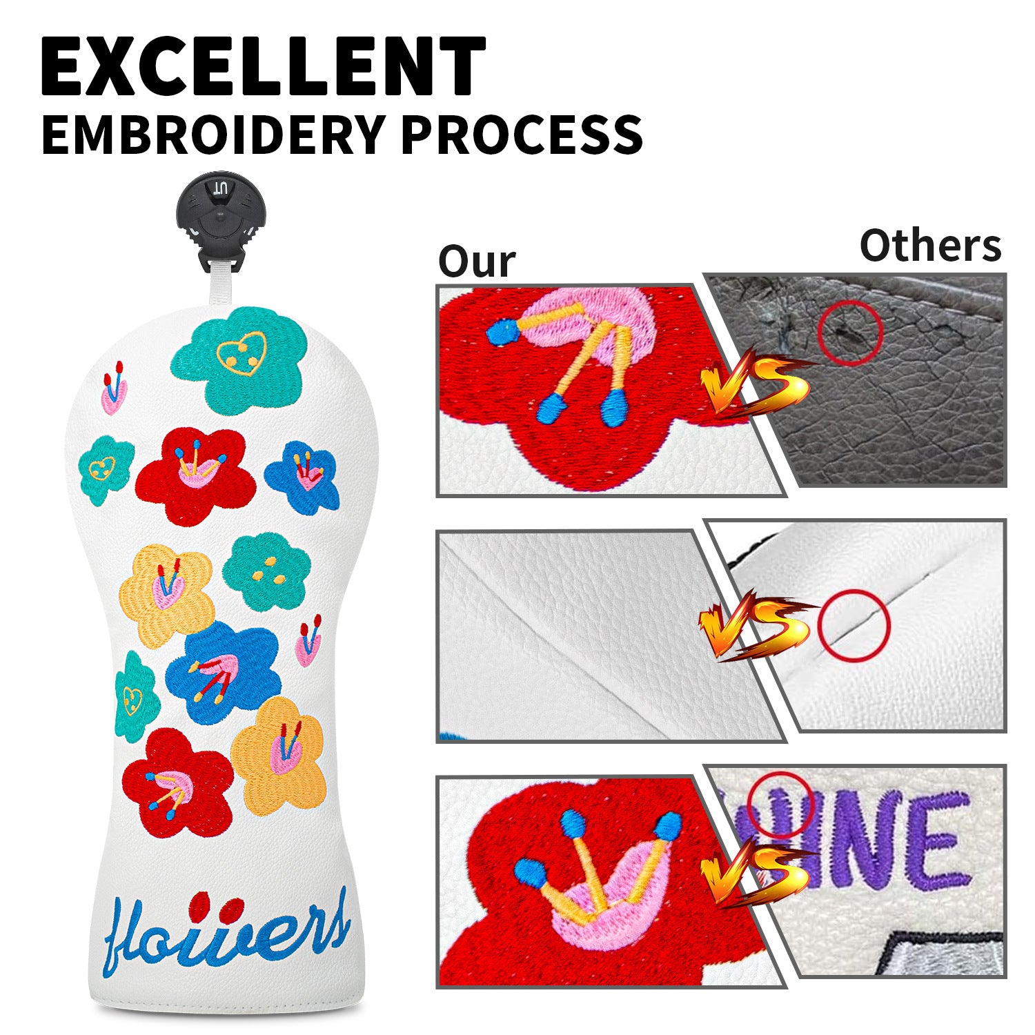 Rotatable design: the hybrid cover comes with an interchangeable number tag, you can use it for any hybrids you want. Golf headcover for 2 3 4 5 6 Ut hybrids.
